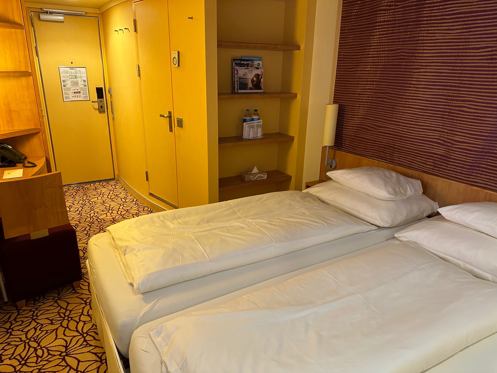 Dadurch gibt es natürlich morgens ab ca. 8:00-8:30 (an Seetagen eher etwas später) und auch generell Tagsüber schon ausgeprägte Geräusche jeglicher Art (Türenschlagen, Rumpeln, Quietschen, Stimmen).