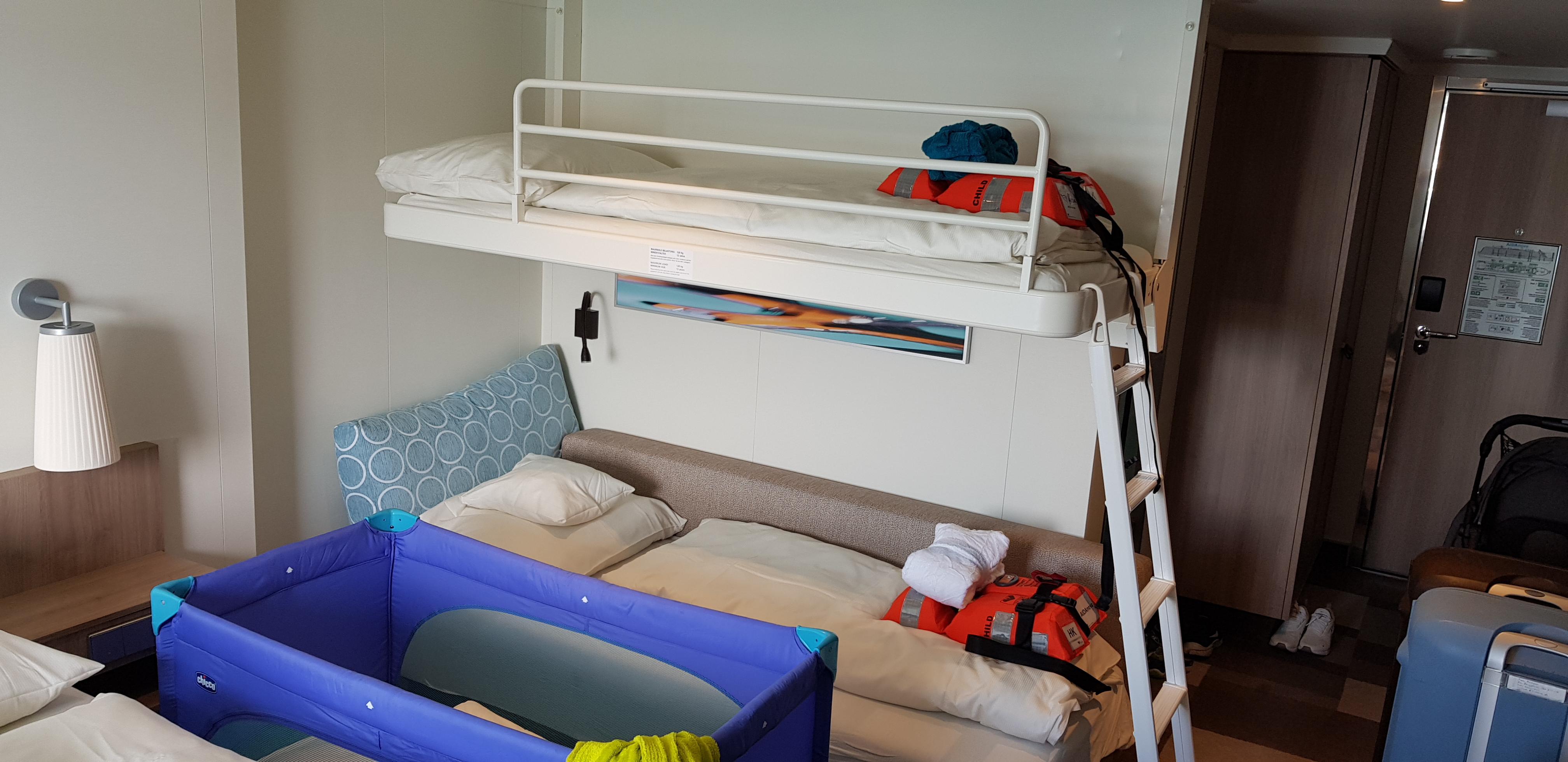 Wir sind zu fünft, unsere Twins sind dann 10 und unser Knirps 2,5 Jahre alt. Da unser Kleinster ein sehr dynamischer Schläfer ist, dachten wir, dass wir für ihn ein Babybett reservieren.