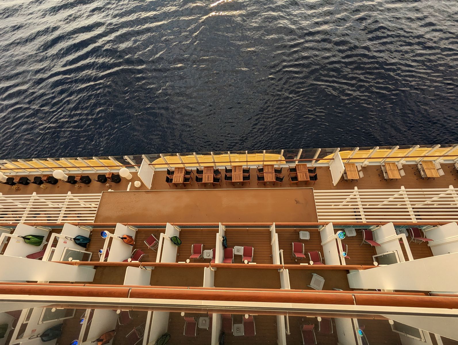 Ich finde für die Größe der Beiden hat man aber sehr viele schöne Plätze mit Blick auf das Meer. Da sind andere Schiffe extrem verbaut. Und am schönsten ist die Zeit wenn noch alle im Bett liegen. ![]()