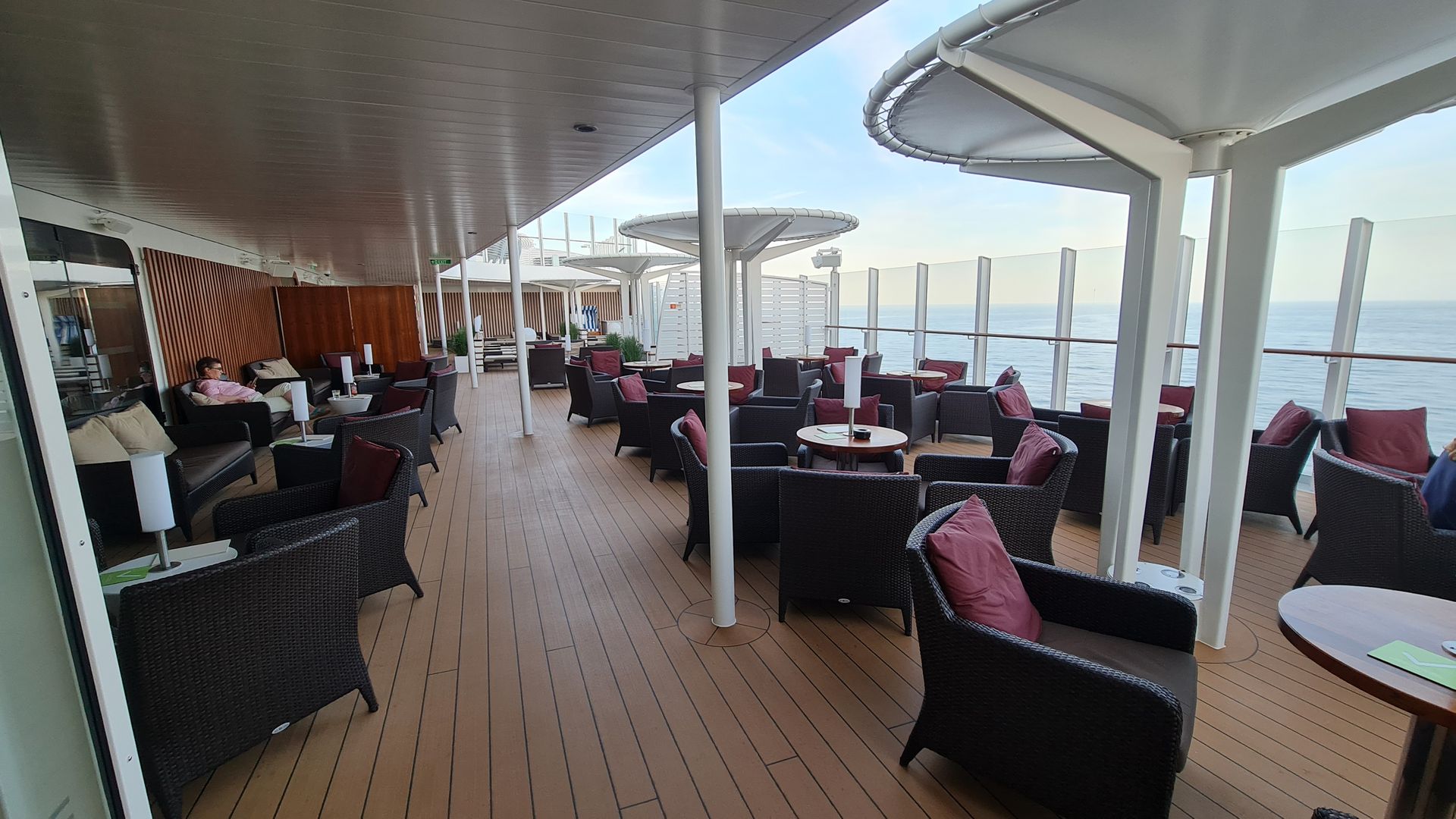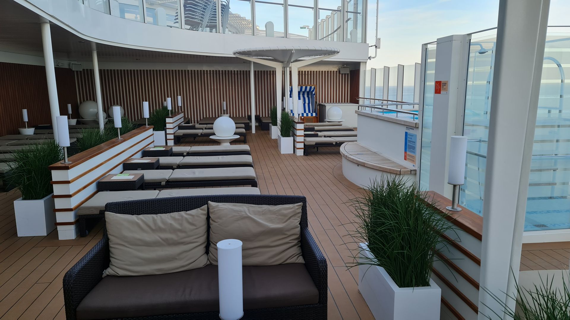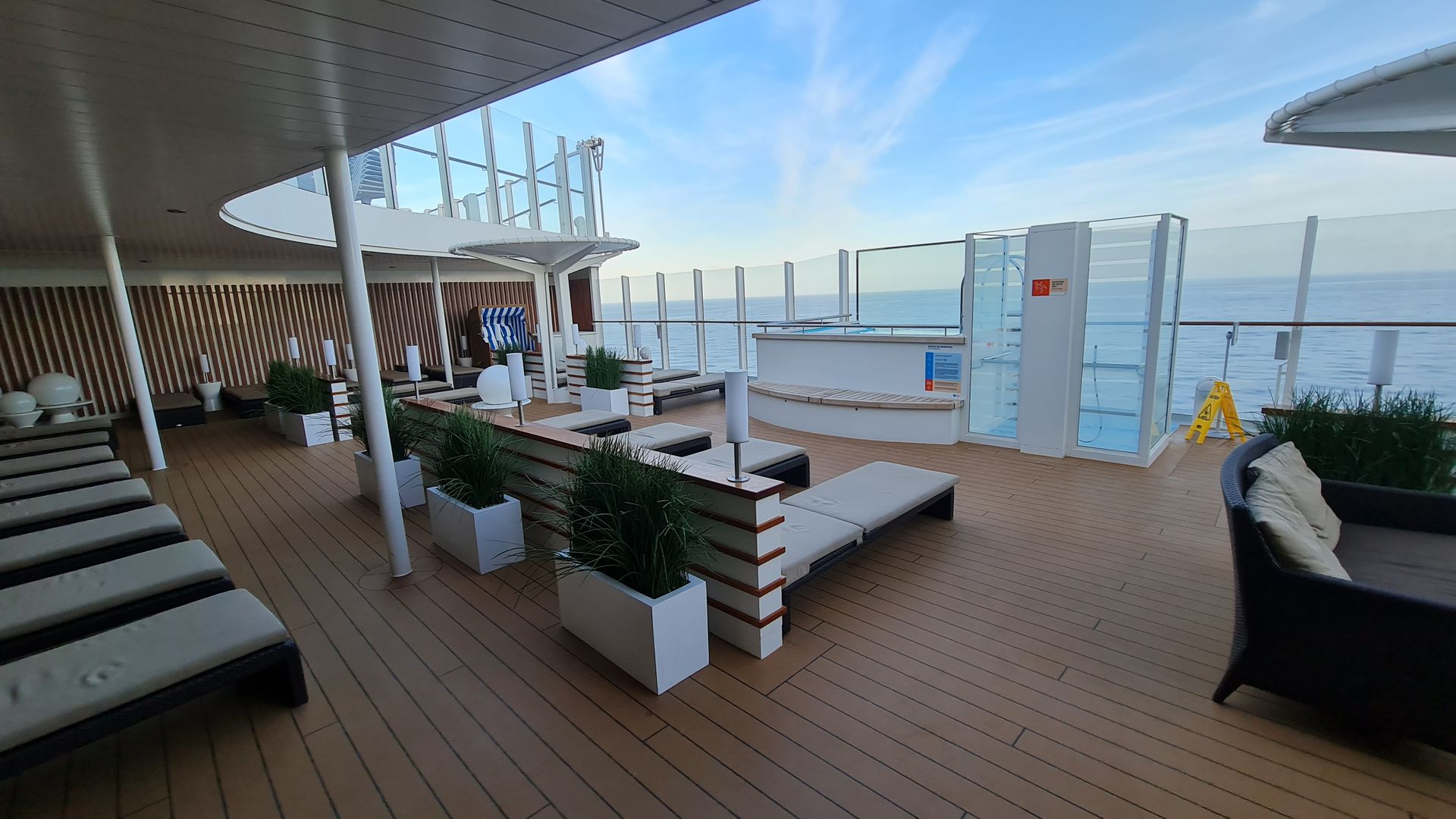 Eine Frage zum Suitenbereich habe ich. Wir hatten vor der letzten Reise überlegt (auch wegen der Berichte der Transreise über das zu volle Schiff ohne Platz), eine Suite zu buchen. Nachdem ich ich Fotos und Videos gesehen hatte, haben wir es gelassen. Ich fand, man sitzt ganz schön auf dem Präsentierteller. Der Reality-Check vor Ort ergab dasselbe Bild. Der Außenbereich war von oben einsehbar und die Lounge mit Panoramascheiben versehen. Gibt es noch andere Bereiche, ihnen denen man sich nicht so ausgestellt vorkommt?