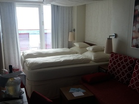tatsächlich schöne Kabine und gute Lage - und toll für Leute ohne Kleinkinder, die eh erst um Mitternacht oder später ins Bett gehen...