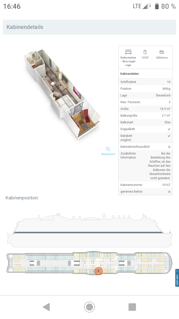 Hab mal einen Screenshot gemacht, von myaida Kabinendetails. Und so hat die Kabine dann auch wirklich ausgesehen. Wir hatten auch bis zur Fahrt gerätselt, was denn nun stimmen wird.