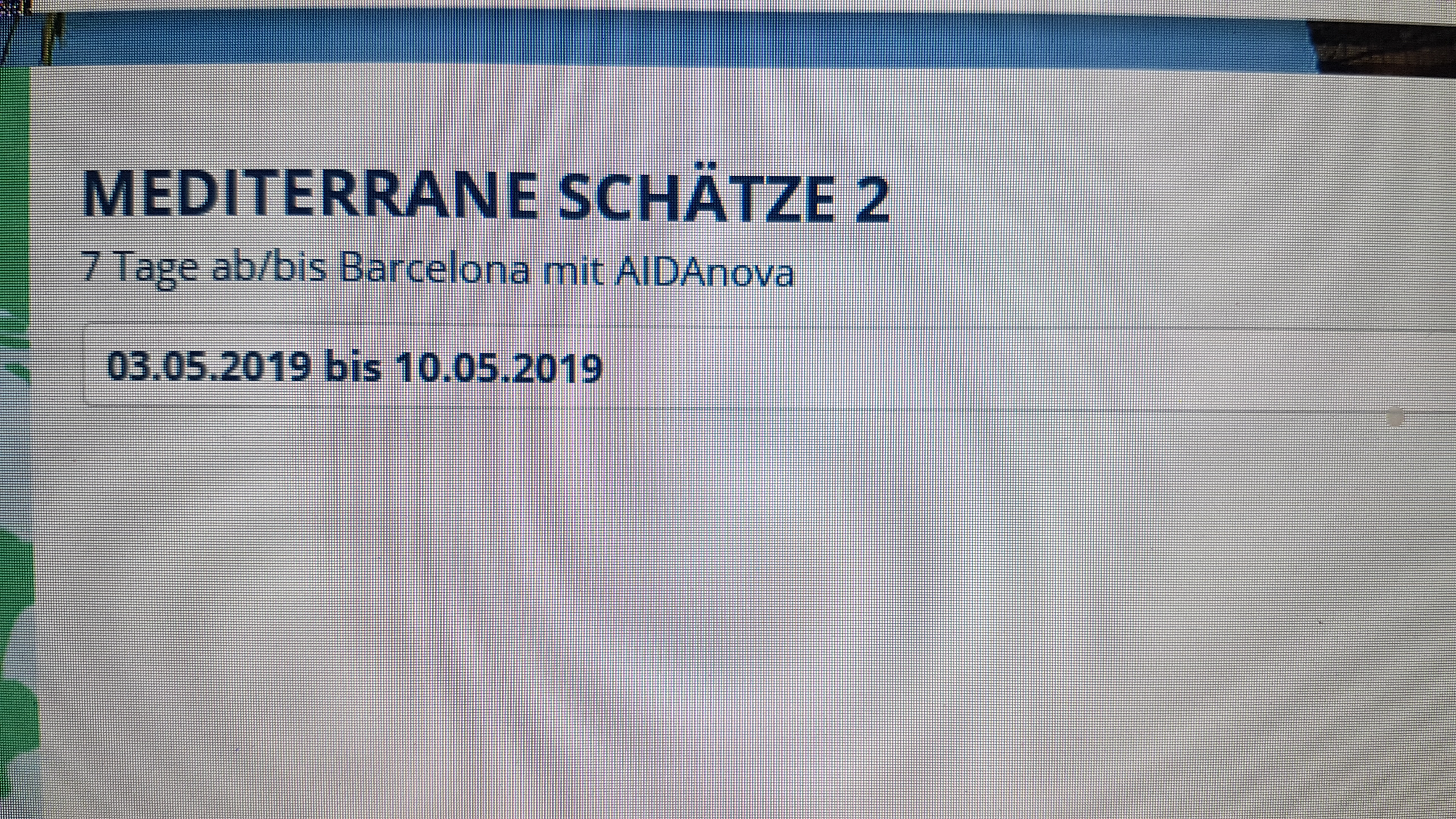 wir suchen eine Balkonkabine für zwei Personen auf der AIDANova vom 03.-10.05.2019 ab Barcelona ohne Flüge.