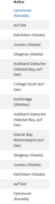 Hallo an die Alaska-Princess-Experten.