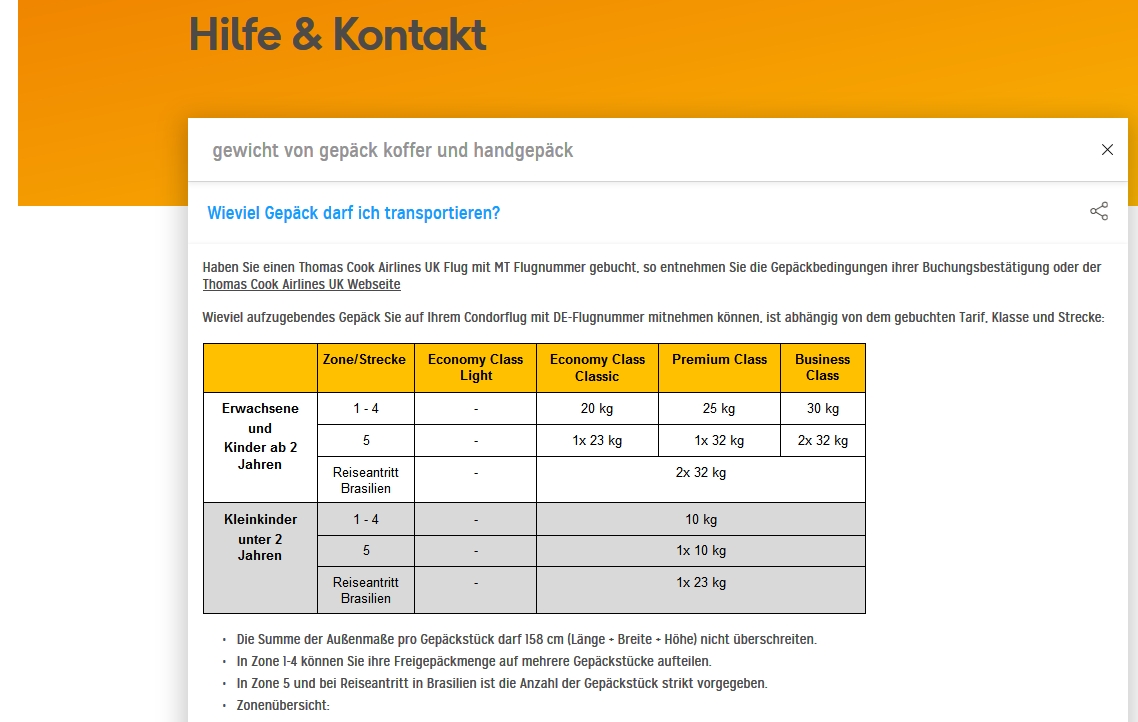 Condor Gepäck. Für alle Zonen und Tarife gilt: ein Gepäckstück darf die Maße von 158 cm (Länge+Breite+Höhe) nicht überschreiten. kein Gepäckstück darf mehr als 32kg wiegen.