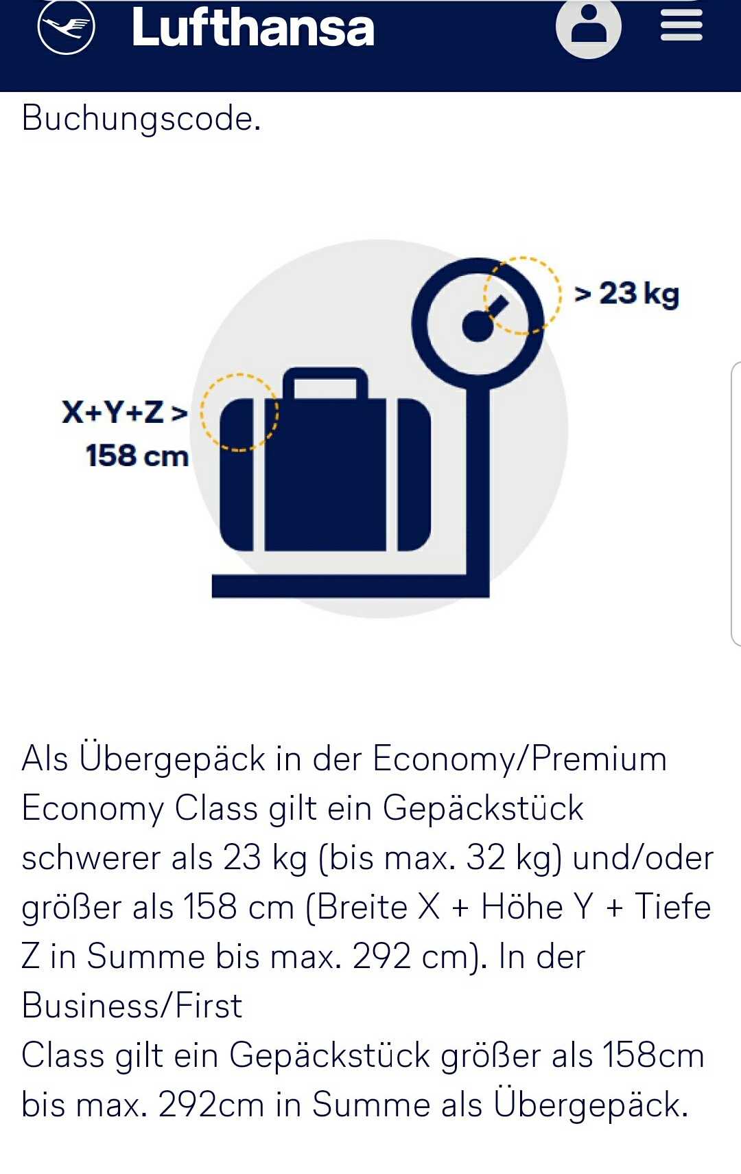 "Das aufgegebene Gepäck darf nicht größer sein als 158 cm (Breite + Höhe + Tiefe). In der Economy und Premium Economy beträgt das maximale Gewicht pro Gepäckstück 23 kg. Die Koffer von Business- und First-Kunden dürfen bis zu 32 kg wiegen"