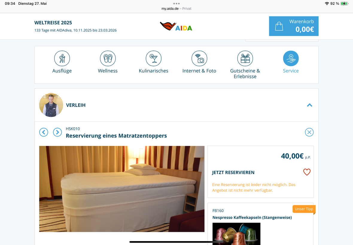Moin. Mal ne blöde Frage, weiß einer ab wann man die Topper reservieren kann? War das eigentlich immer so gewöhnt, das dies von Anfang an machbar ist. Nun haben wir die Route von Gran Canaria in die Karibik für Nov 26 gebucht und alles ist zu reservieren bis auf die Topper? Oder gibt’s die gar nicht mehr? Danke für euer Feedback …