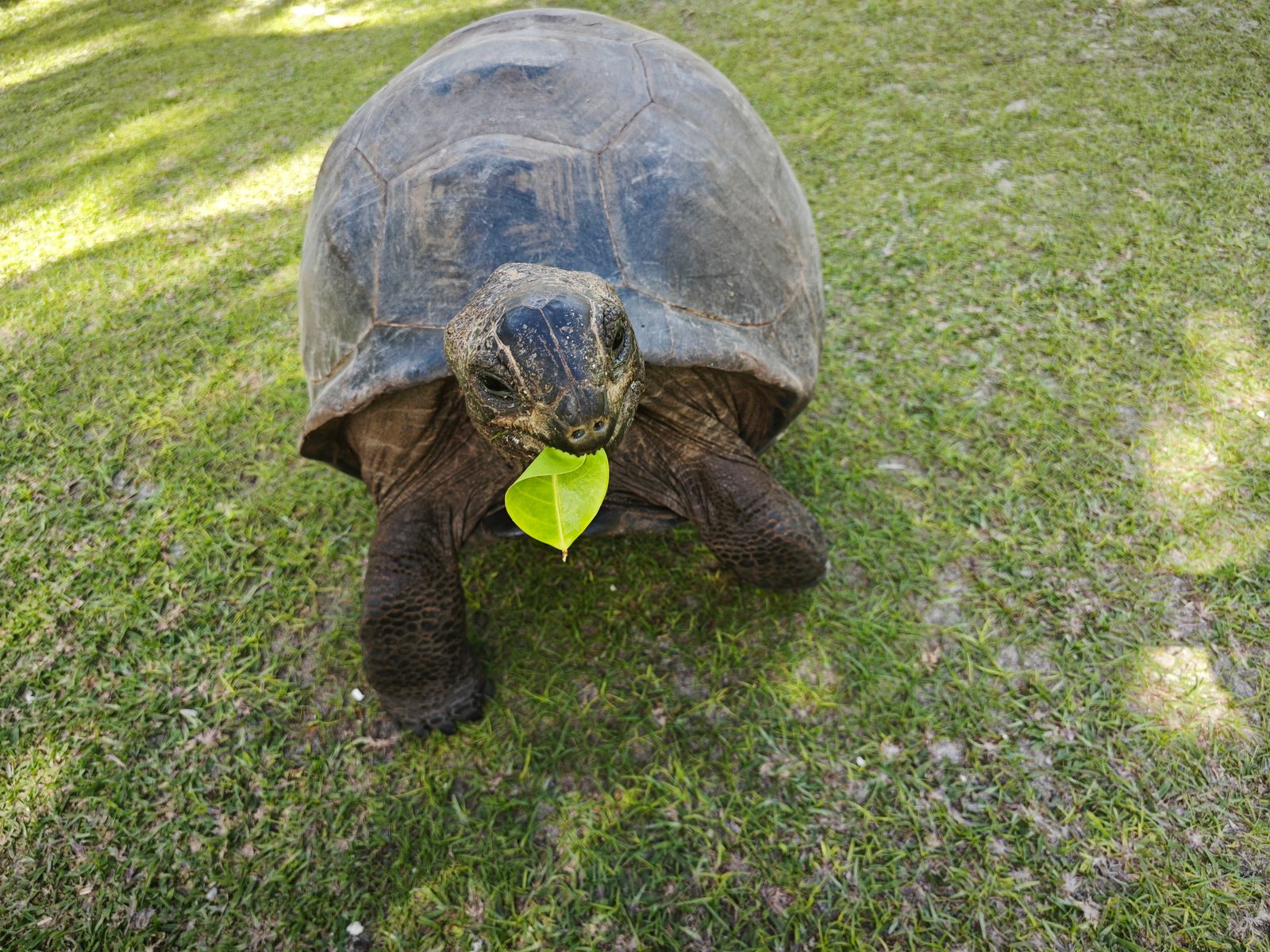 Mit dem Katamaran werdet ihr auf Curieuse anlegen und dort habt ihr das Vergnügen mit freilaufenden Schildkröten. Man hat also die Qual der Wahl:)