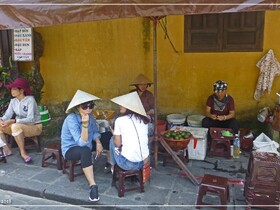 Wir hatten den Ausflug mit Aida gebucht, da wir genügend Bordguthaben hatten. Die Fahrt nach Hoi An von Da Nang ist nicht allzu weit, ca. 30 km. Der Gang durch die kleinen Gässchen mit den vielen kleinen Restaurants und Marktständen ist sehr schön, aber eben relativ vile Leute unterwegs. Dass war 2001 natürlich ganz anders. Hauptziel ist die "Japanische Brücke" ein Fotomotiv. Neben uns war auch der private Anbieter R. Dittko vor Ort, die Gruppe war aber auch nicht gerade klein, natürlich weniger, als bei Aida. Da aber sehr viel Touristen vor Ort sind, spielt das kaum eine Rolle.