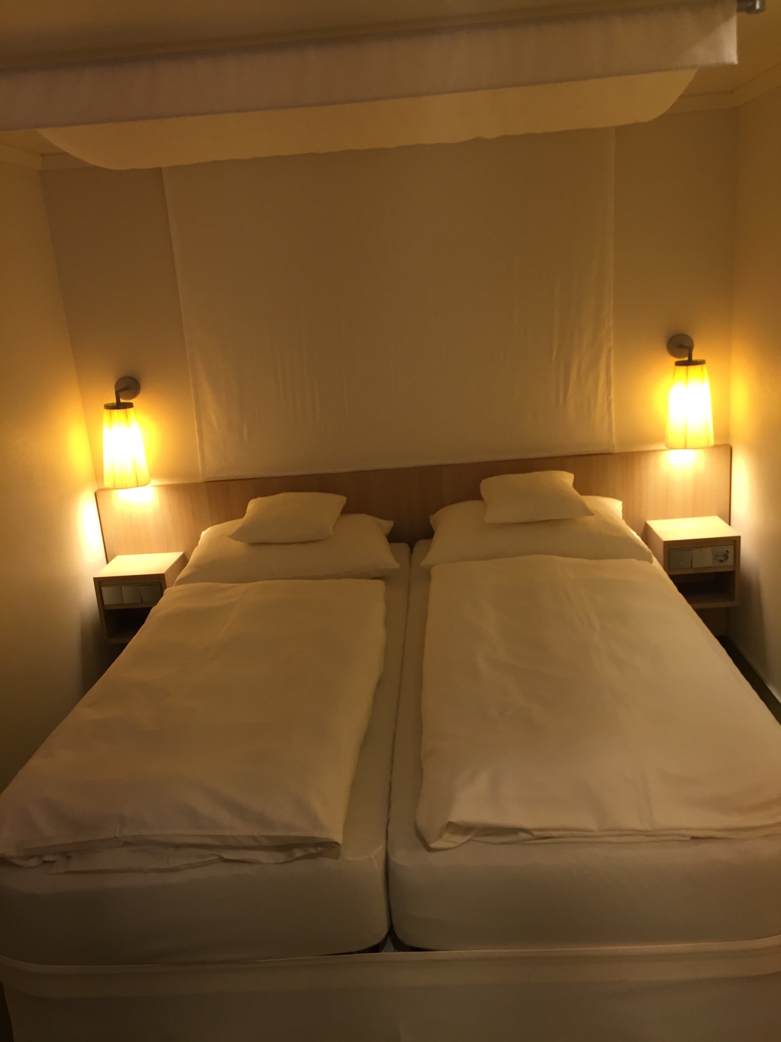 Innenkabine, ganz vorne am Bug. Ruhig aber durch die Lage weite Wege.