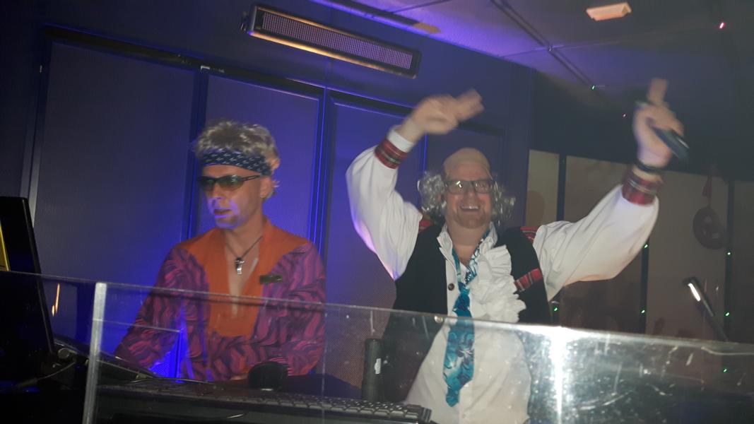 In der Anytime Bar zu vorgerückter Stunde ist Party angesagt, schrill verkleidet unser DJ Andi und GM Thilo.