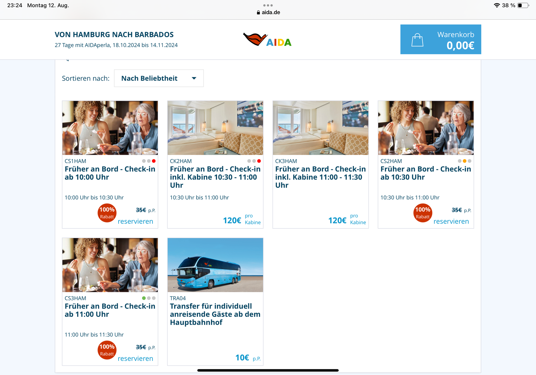 Genauso ist es bei unserer Reise im April 2024, 10 Uhr kann man nicht auswählen.