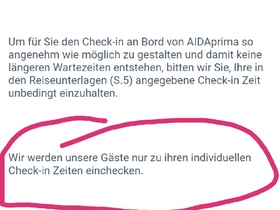 Und dann gibt Aida eine Check in Zeit an, die man gar nicht einhalten kann .