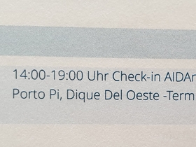 Unsere Check-in Zeit wurde nach Zuteilung der Kabine von 12 bis 16 Uhr auf 13 bis 14 Uhr geändert. Da wir vorher am Ort übernachten wird das machbar sein. Aber wenn ich die Änderung jetzt erst erfahre, aber (wie wir) bereits vor zwei Monaten einen Zug mit Zugbindung gebucht habe, kann das schon schwierig werden.