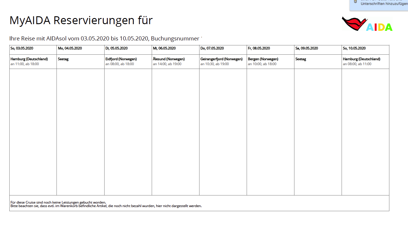 Nee geht nicht mehr. Da steht nur noch der Reisepreis, Schiffsmanifest, Zahlungsmittel und Aida Gutschein.