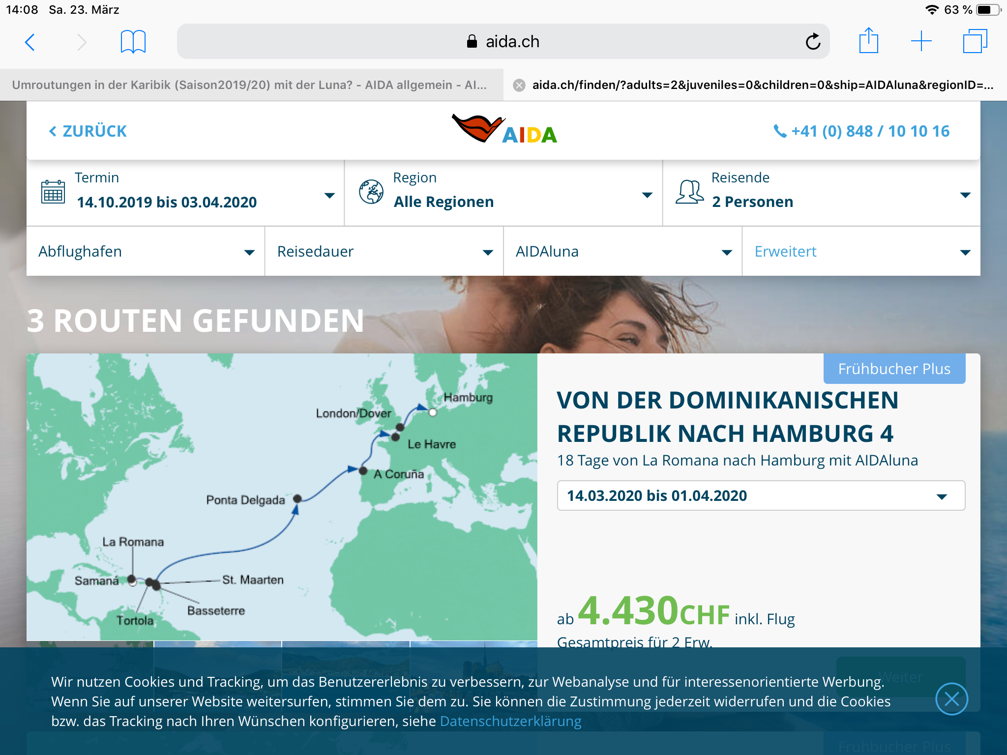 2. die erste buchbare Tour aus der Karibik ist die Transtour ab La Romana nach Hamburg.