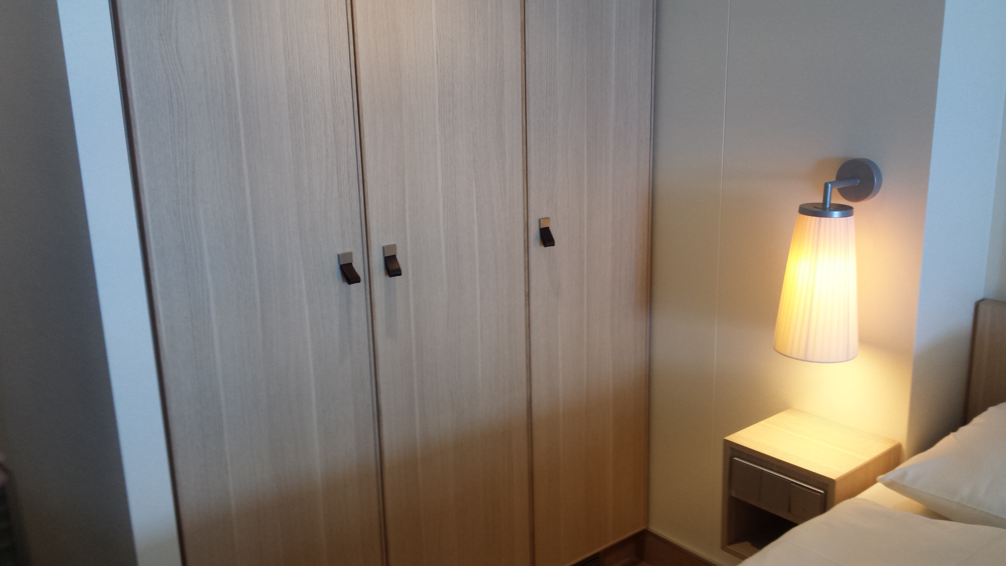 Leider ist die Kabine unter dem großen (3 m, 4 m?) Dachvorsprung, so dass so gut wie keine Sonne auf den Balkon kommt. Morgens hatten wir mal von 7.30 bis 8 Uhr sonne ![]()