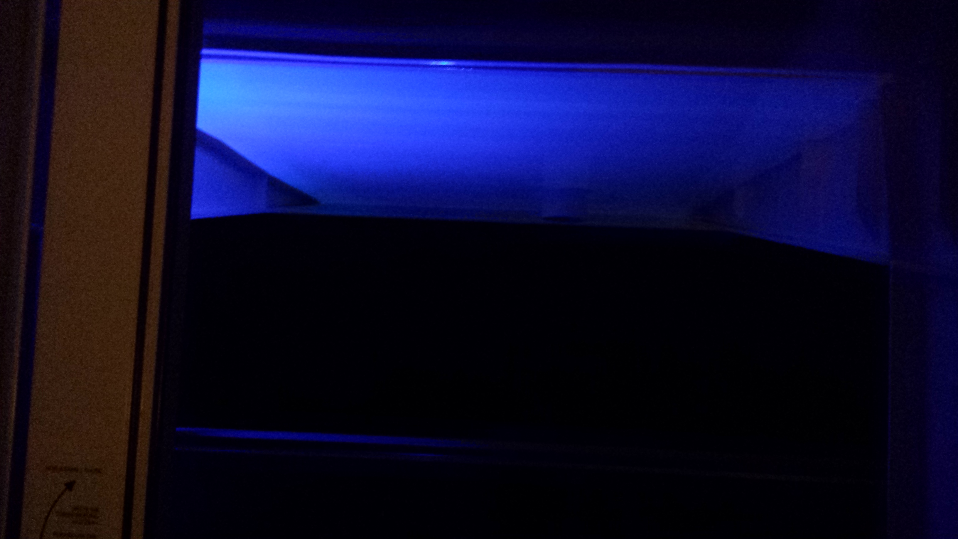 Nachts sieht man einen hellblauen Himmel (Spiegelung der Lichter von Deck