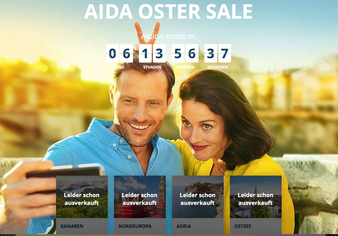 Vom 17.04.19 (10:00) bis 23.04.19 (24:00) gibt es wieder ein AIDA Oster-Sale.