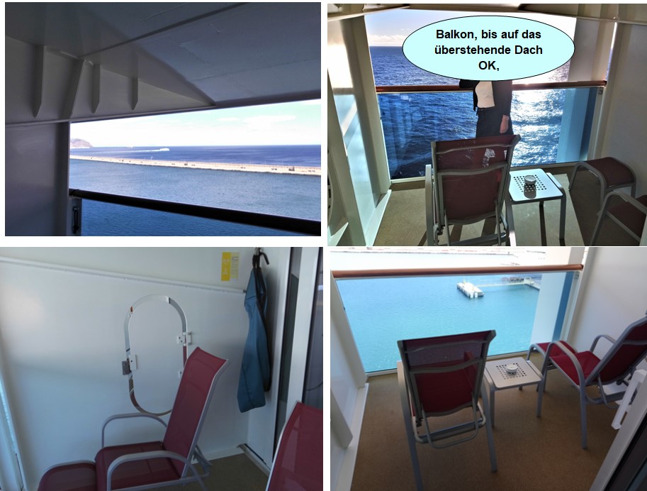 lediglich die Kabine, besser gesagt der Balkon entsprach nicht unseren Wünschen.