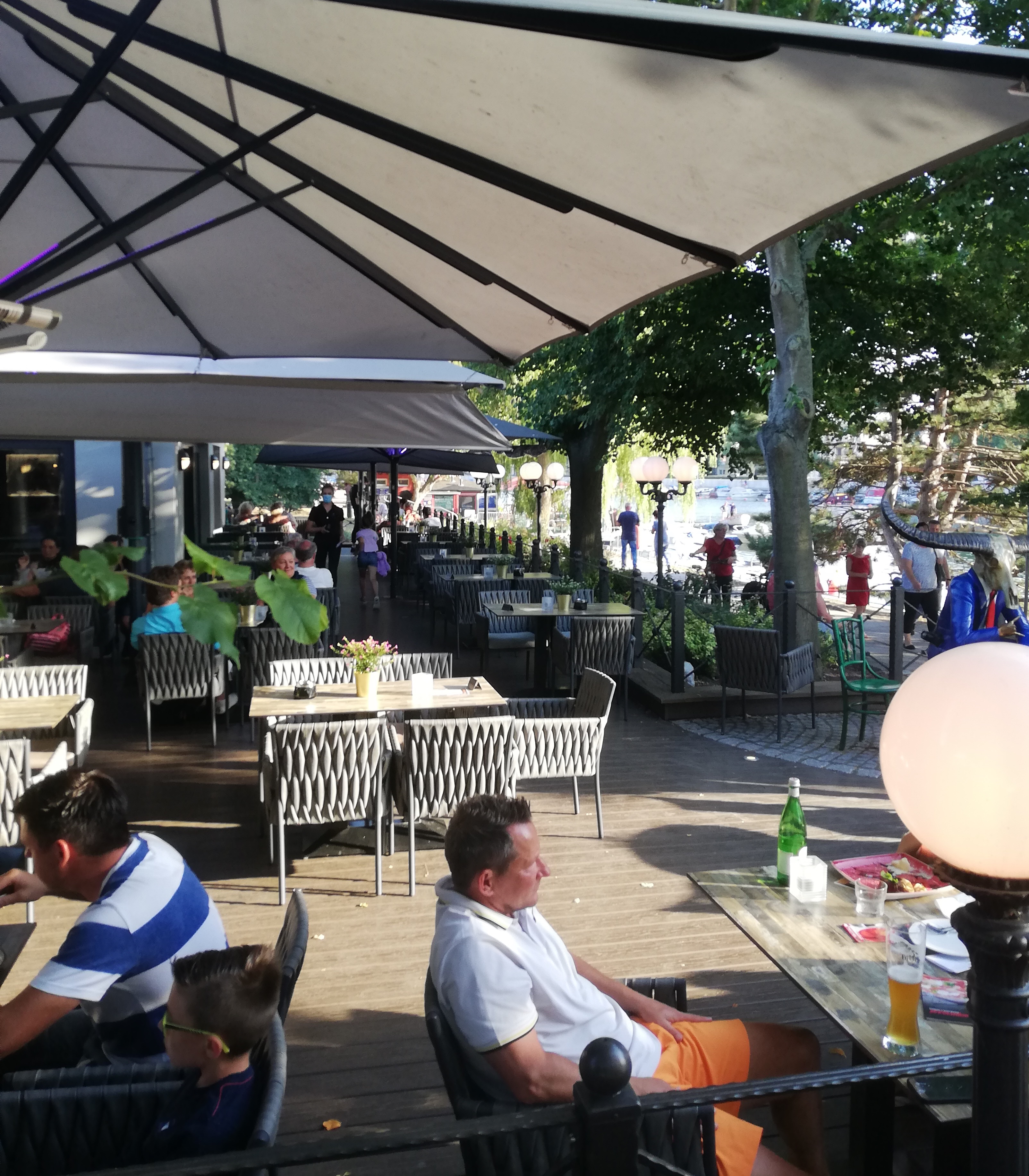 Samstag war Warnemünde wieder brechend voll, was mir aber auffiel war, dass bei den Italienern auf der Mittelmole - zur besten Essenszeit - recht viel Tische frei waren...