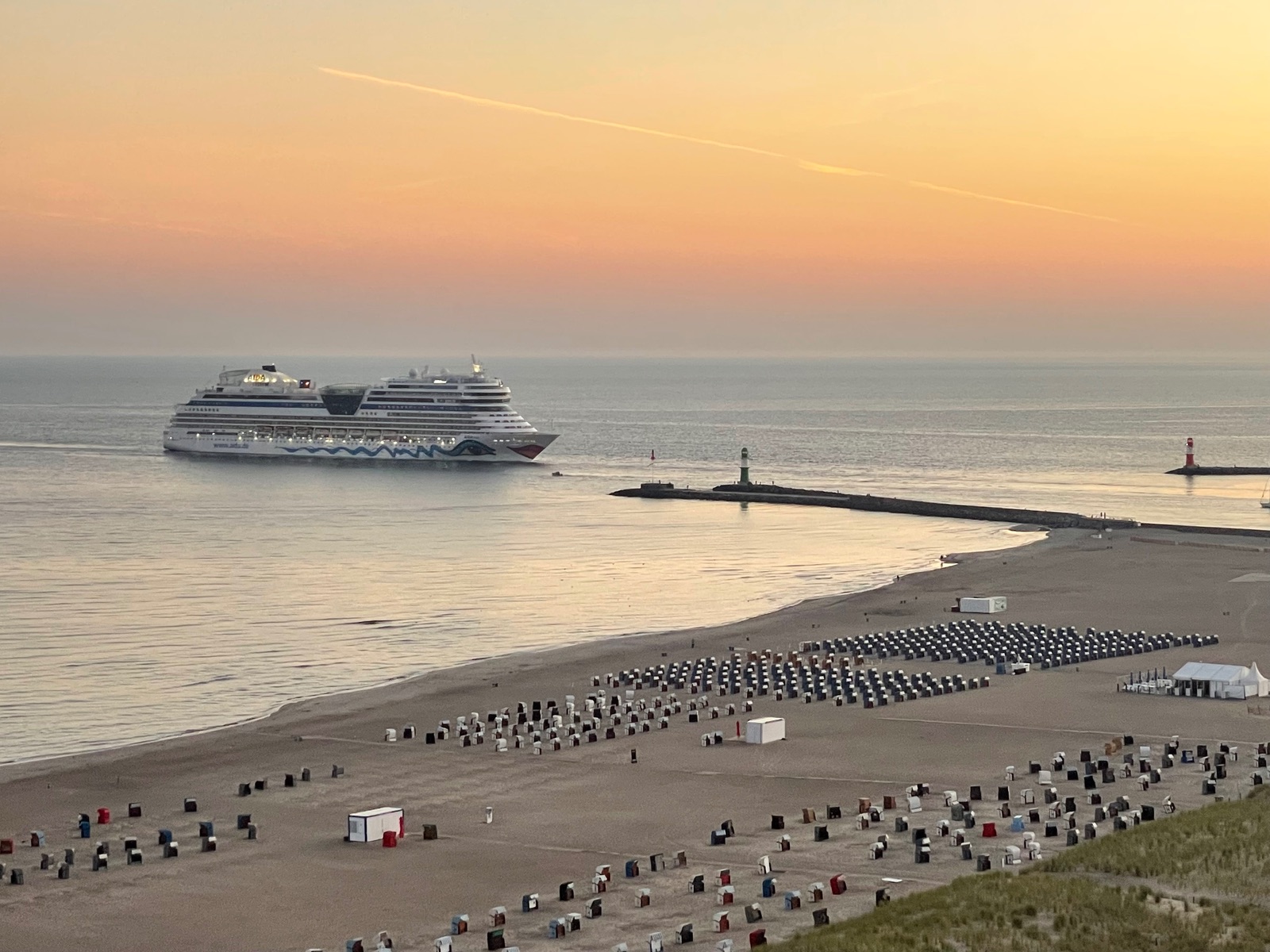 ich bin jetzt auch in Warnemünde angekommen, einchecken erledigt, MS 7 verabschiedet, jetzt geht es an den Strand, die Wassertemperatur mit den Füßen testen