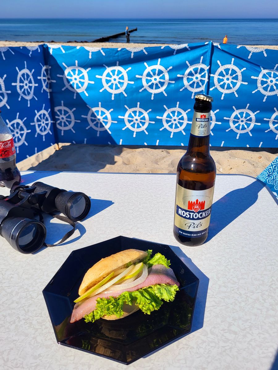 Zwar nicht ganz so elegant und üppig wie gestern im Hummerkorb, aber immerhin mit Seeblick...