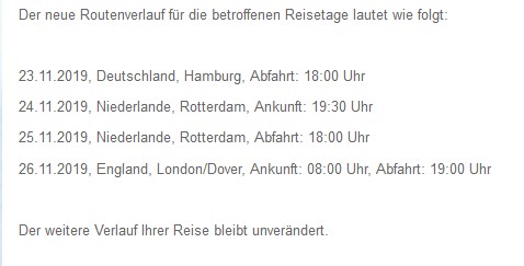 Haben soeben eine E-Mail von Aida bekommen, in Bezug auf unsere Reise.