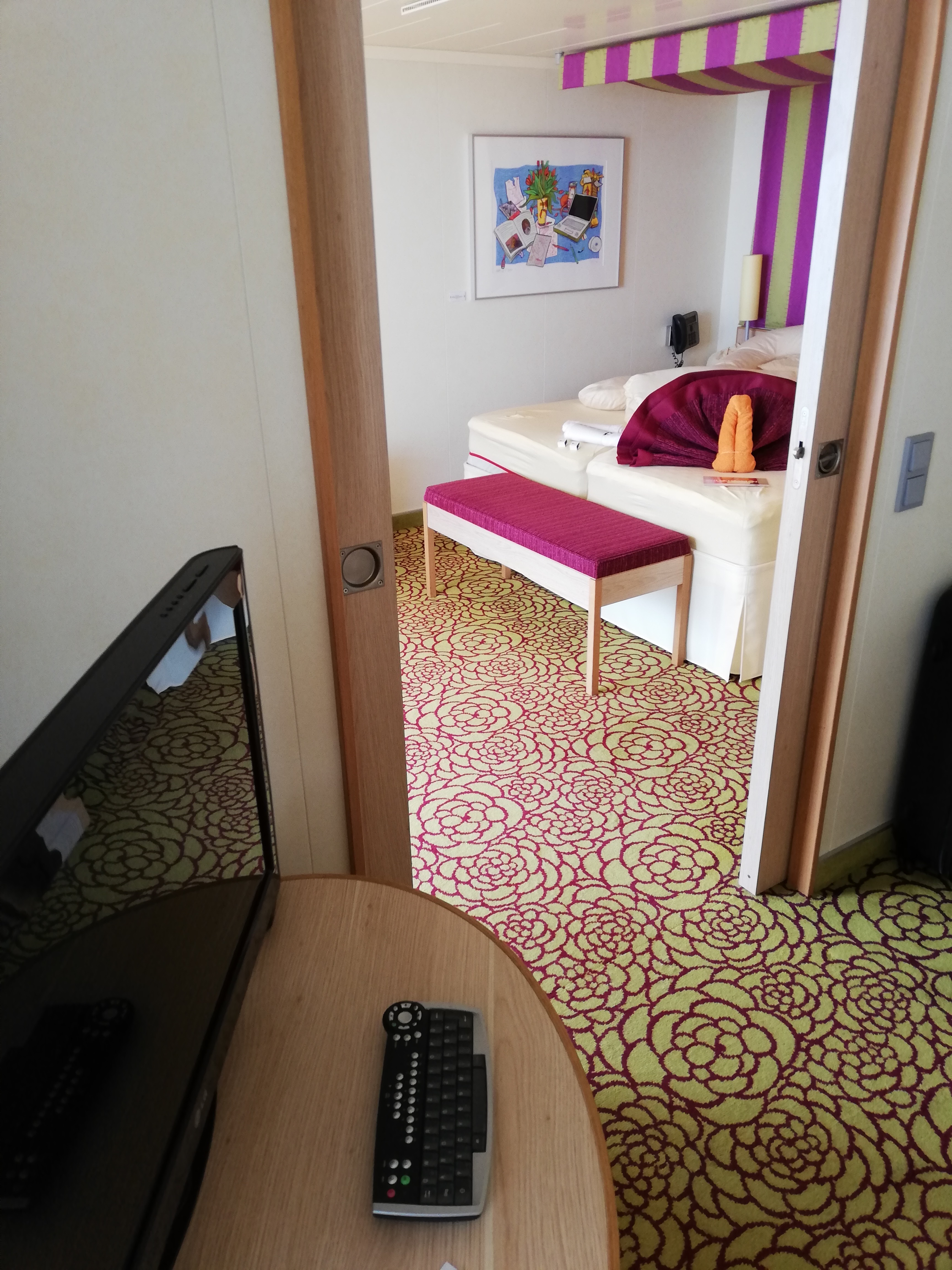 anzumerken bei Trans war doch recht viel Russ auf der Terrasse, was aber täglich gesäubert wurde. Diese Getränke/ Gläser am Schmink- Spiegel Tisch hatten wir im Schrank verstaut um mehr Platz zu haben.