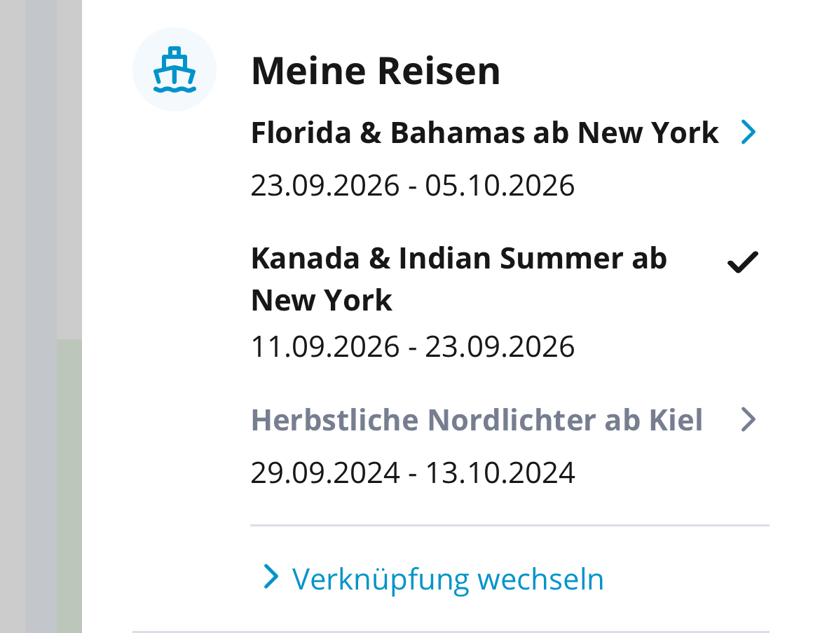 Noch kurz eine Ergänzung: es ist kein extra Auswahlfeld, man klickt einfach die andere Reise an (wenn denn eine da ist 😉) -