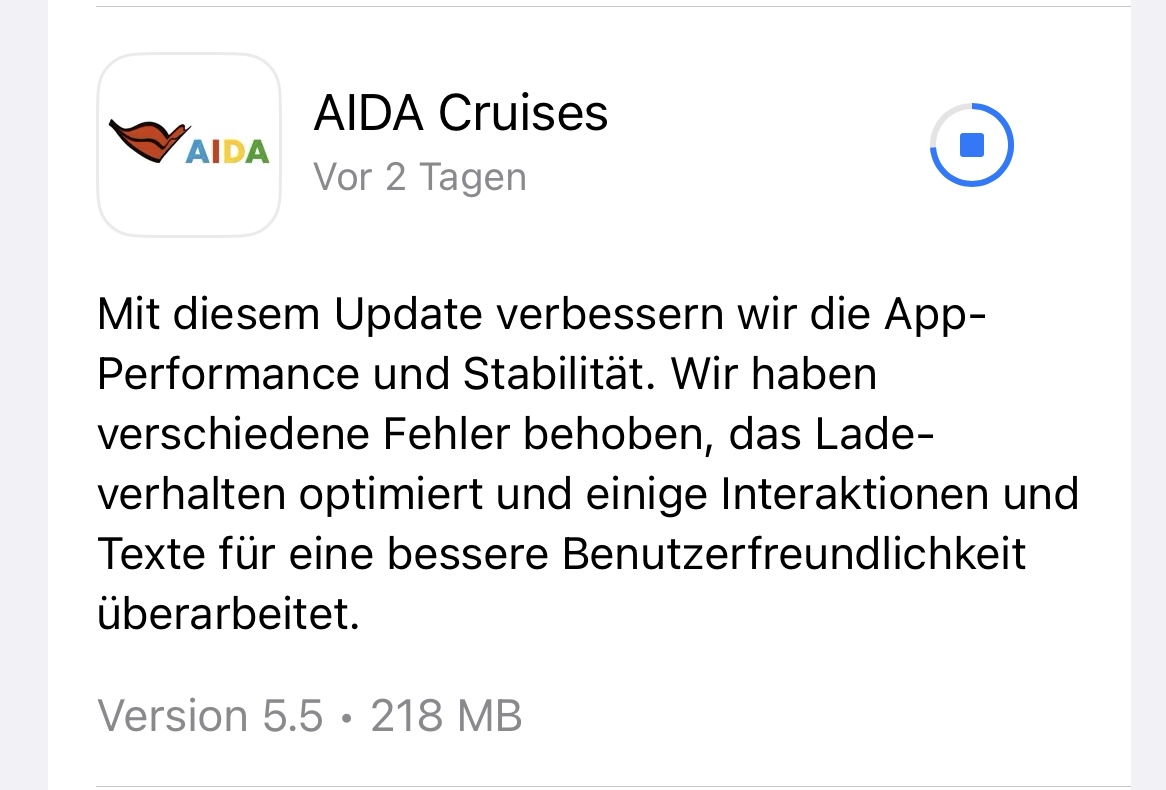 Ich habe langsam aber sicher das Gefühl, dass man mit der AIDA App endlich aufräumt und den Funktionsumfang massiv verbessert. Wenn man jetzt noch das Bordportal vollständig in die App integriert und nicht mehr den Umweg über die Verlinkung zum Browser gehen muss, dann wird das auch was. Auch die "neue" Aufteilung im Menü (An Land/An Bord) begrüße ich sehr.