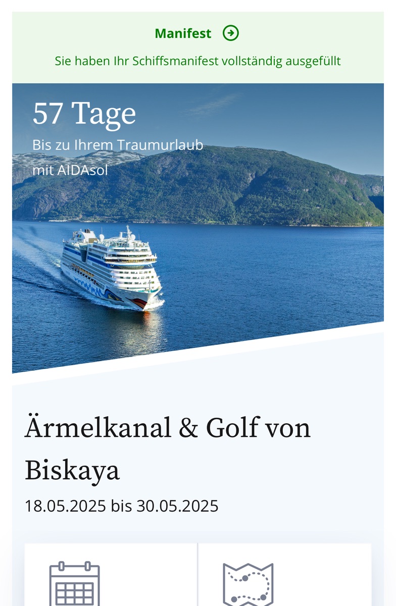 Seit dem "App Update" erscheint bei meinen gebuchten Reisen nun der Hinweis zum Schiffsmanifest.