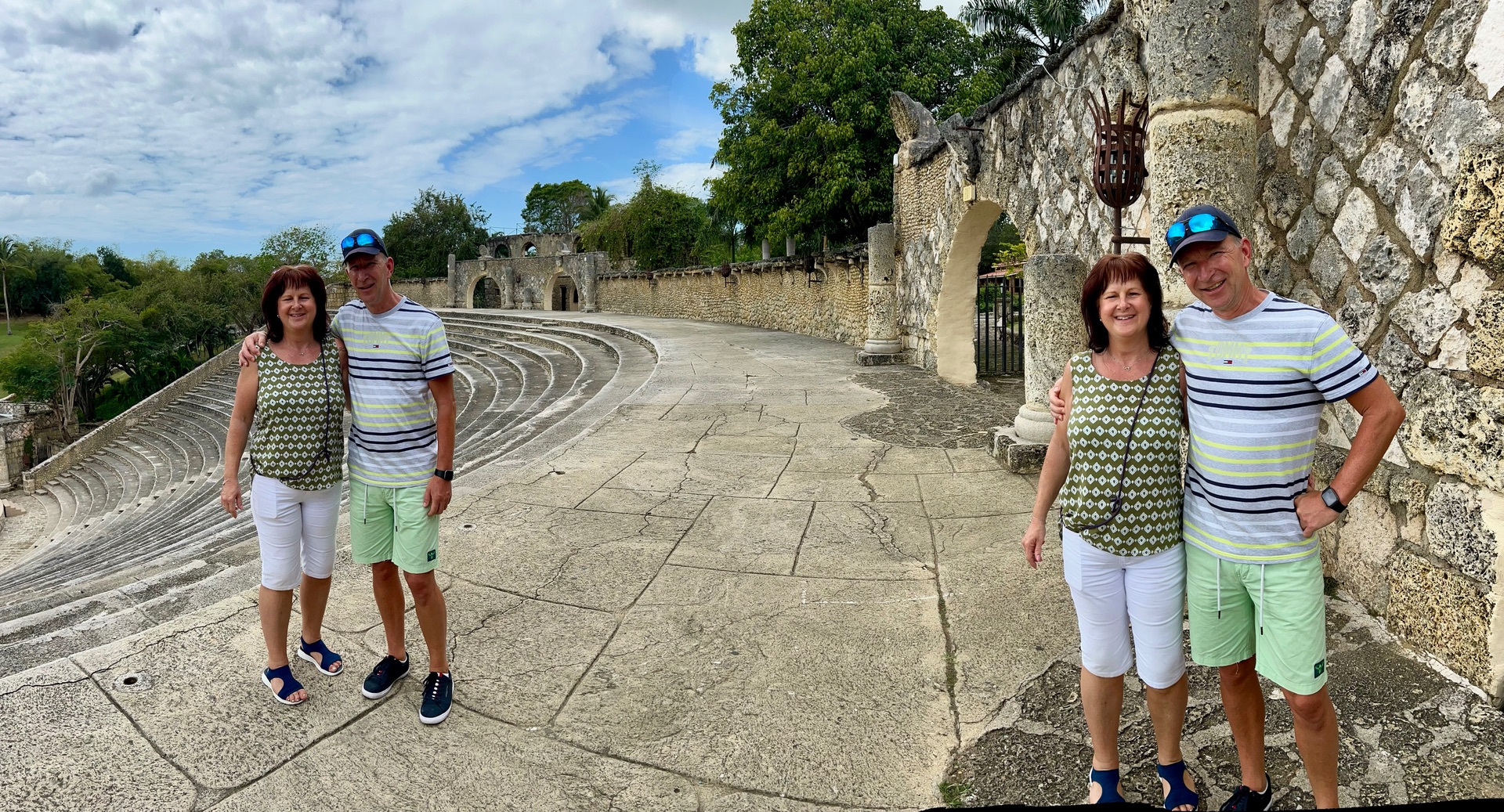 Weil wir keine La Romana Fans sind , hatten wir für unsere diesjährige Karibikkreuzfahrt den Hafen als Start und Ziel gewählt . Am Anreisetag haben wir Nix mehr unternommen , aber da wir den Rückflug erst um 18.15 Uhr hatten , war klar , wir wollten nicht den Tag auf dem Schiff vergammeln , sondern noch etwas unternehmen . Wir entschieden uns für einen kurzen Ausflug Altos chavon mit Bootsfahrt von 8.30 Uhr bis 12.30 Uhr . Das einchecken und Koffer abgeben davor ging problemlos und fix , nun konnten wir pünktlich mit vielen anderen in einem großen Bus und einem lustigen deutsch sprechenden Guide starten . Zuerst ging’s zum Fluss auf ein Flossartiges Boot , mit dem wir etwa eine Stunde auf dem Fluss hin und auch wieder zurück fuhren . Eine Platte mit Obst und die üblichen Getränke wurden gereicht . Weiter ging’s zu einer kleinen Schokoladenmanufaktur mit Erklärungen zur Herstellung und mit Verkauf . Direkt gegenüber danach in die kleine Zigarrenmanufaktur , wo wir die Herstellung hautnah beobachten konnten und direkt auch hier die Zigarren erwerben konnten . Nächste Station war das künstlerdorf Altos chavon , wo wir eine Stunde Freizeit zum erkunden und spazieren hatten . Pünktlich waren wir wieder am Schiff , gönnten uns ein letztes Menü im ganz schön gesund , verabschiedeten uns an unseren Lieblingsbars 🍹🧉von der 💵 Crew , natürlich jeweils mit einem Getränk 😂😂, duschten in der Sauna und waren perfekt zum Transfer um 15.30 Uhr frisch umgezogen ready for take off ✈️ für uns war das so der perfekte Urlaubsausklang