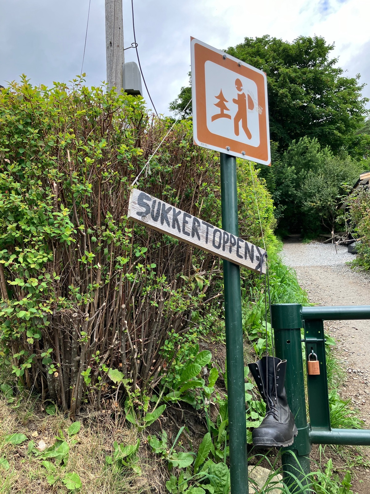 Ich hatte dann den Ausflug „Wanderung auf den Sukkertoppen“ mit laut Ausflugsbeschreibung leichtem Klettern. Wir waren eine Gruppe von 12 Personen plus einem Guide und einem Scout von Aida. Wir sind 10 Minuten zu dem Startpunkt mit dem Bus gefahren. Es gibt wohl auch einen öffentlichen Bus, der da hinfährt, ich hätte aber den Startpunkt der Wanderung nie gefunden. 🙈 Mitten in einer Wohnstraße kommt auf einmal dieses Schild: