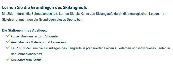 AIDA bietet bei der Reise `Winter im hohen Norden´ den Ausflug ALF12 Langlauf mit Skilehrer an.
