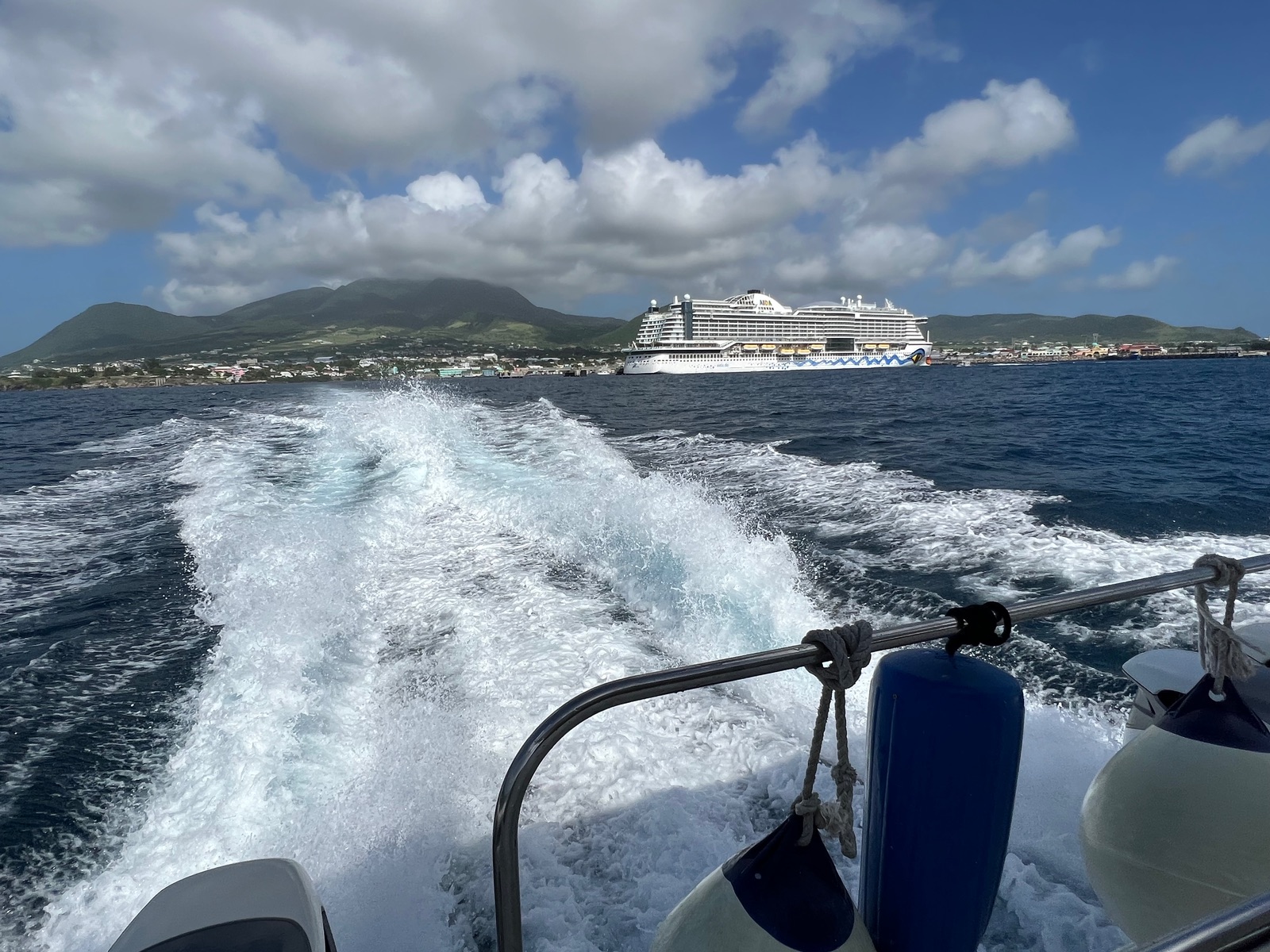 Ja, mit der Schnellbootfähre dauerte die Überfaht so 20-25 min. AIDA hat aber glaube ich zwei Ausflüge im Angebot nach Nevis und da war nur einer mit dem Schnellboot.