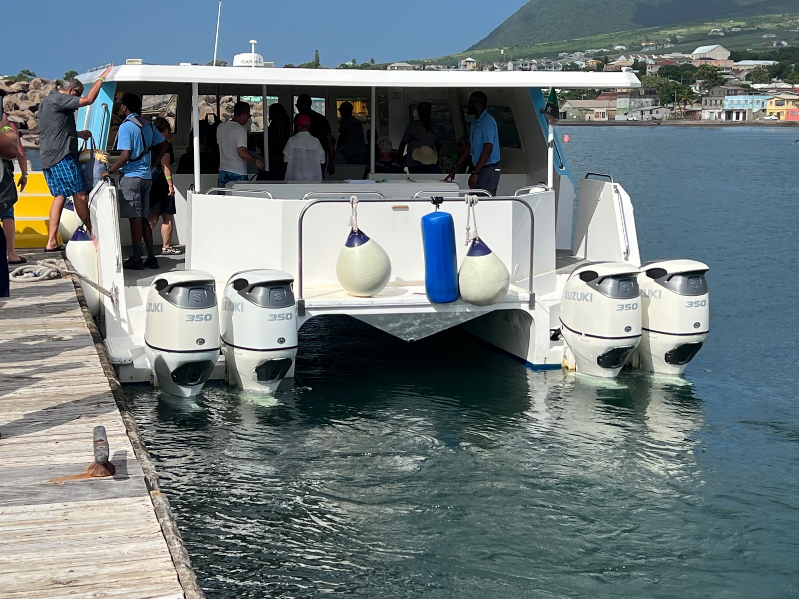 Ja, mit der Schnellbootfähre dauerte die Überfaht so 20-25 min. AIDA hat aber glaube ich zwei Ausflüge im Angebot nach Nevis und da war nur einer mit dem Schnellboot.