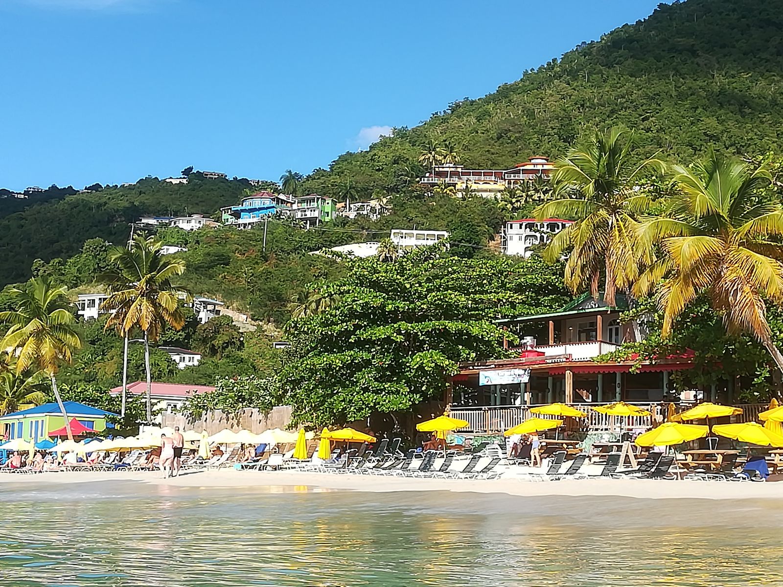 Wir waren im November am Strand von Tortola. Mit einem offenen Bus fuhren wir nach dem Mittagessen an einen Strand. Leider weiß ich den Namen nicht mehr. Für uns war ein Strandabschnitt mit Liegen und Schirmen reserviert, auch ein Getränk konnte man sich an der Strandbar abholen. Das schönste war dann aber abends der Sonnenuntergang.