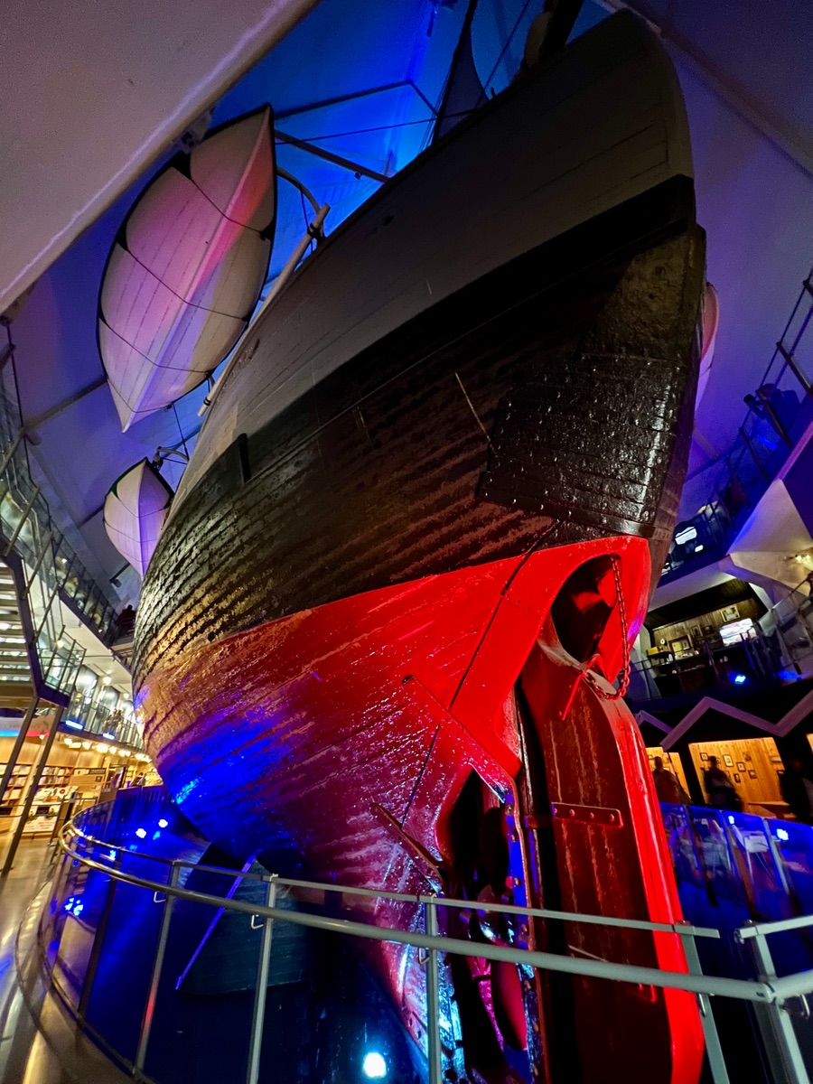Das Museum wäre auch behindertengerecht ( zuminest in Teilen) da auf die einzelnen Ebenen Aufzüge gehen. In die Boote kommt man mit Rolli natürlich nicht, wer klettern kann sollte unbedingt auch das Innenleben anschauen