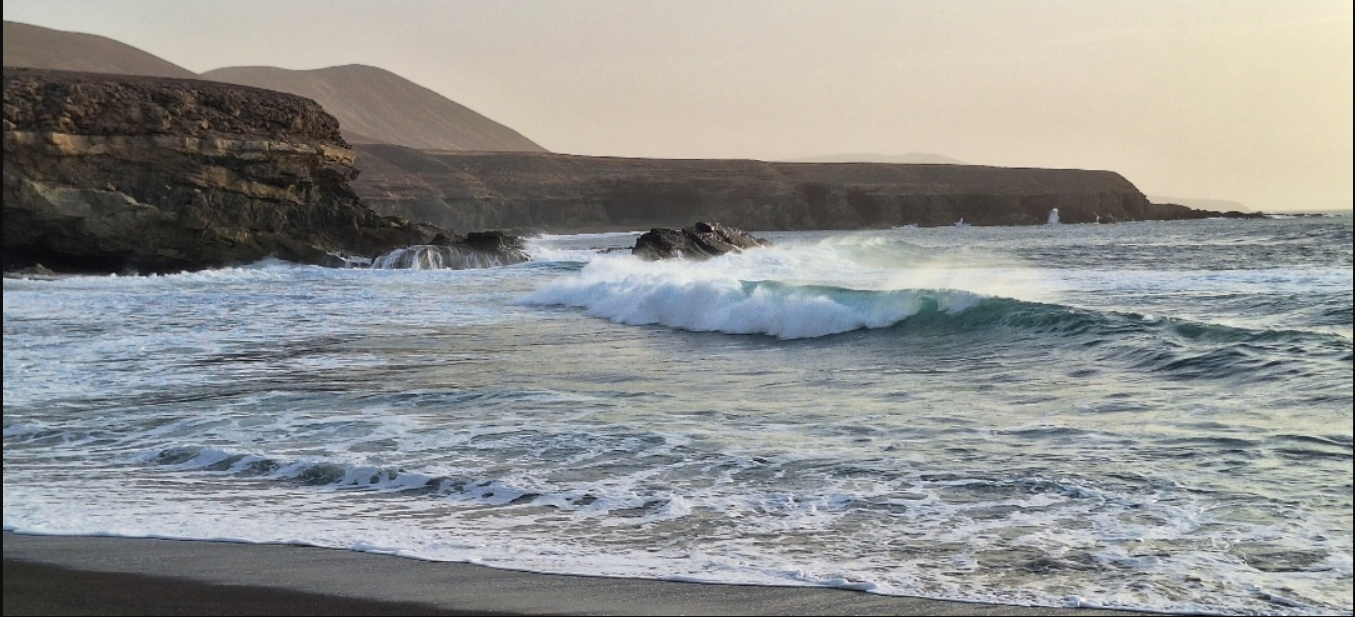 Die heftige Brandung, die sehr hohen Wellen! Die Geräuschkulisse, die Kulisse im Allgemeinen. Einfach irre! Wir hatten auch etwas Calima an dem Tag und es war ein ganz besonderes Licht. Ich hätte alleine nur am Strand sitzen können und aufs Meer schauen können.