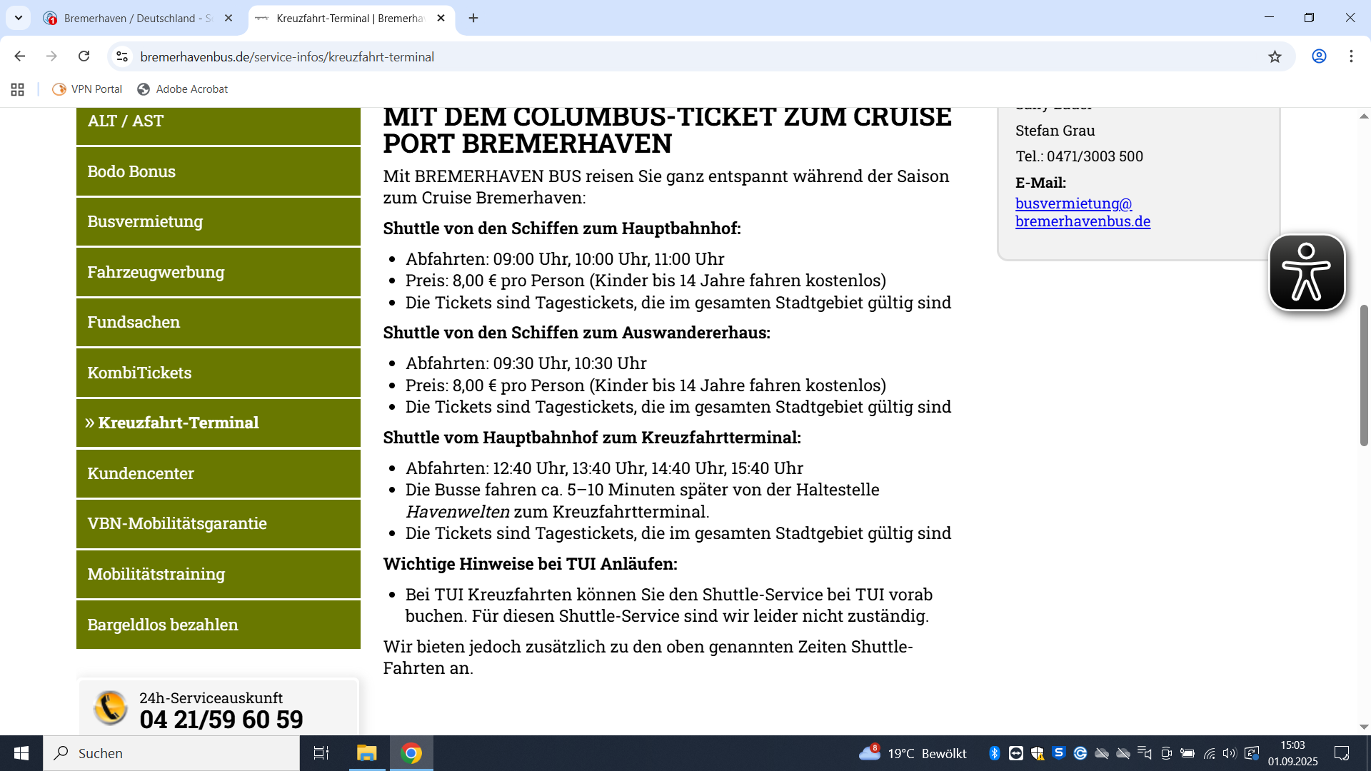 • Erschwerte Anreise per Zug von Bremen nach Bremerhaven und zurück bis einschl. 03.06.19