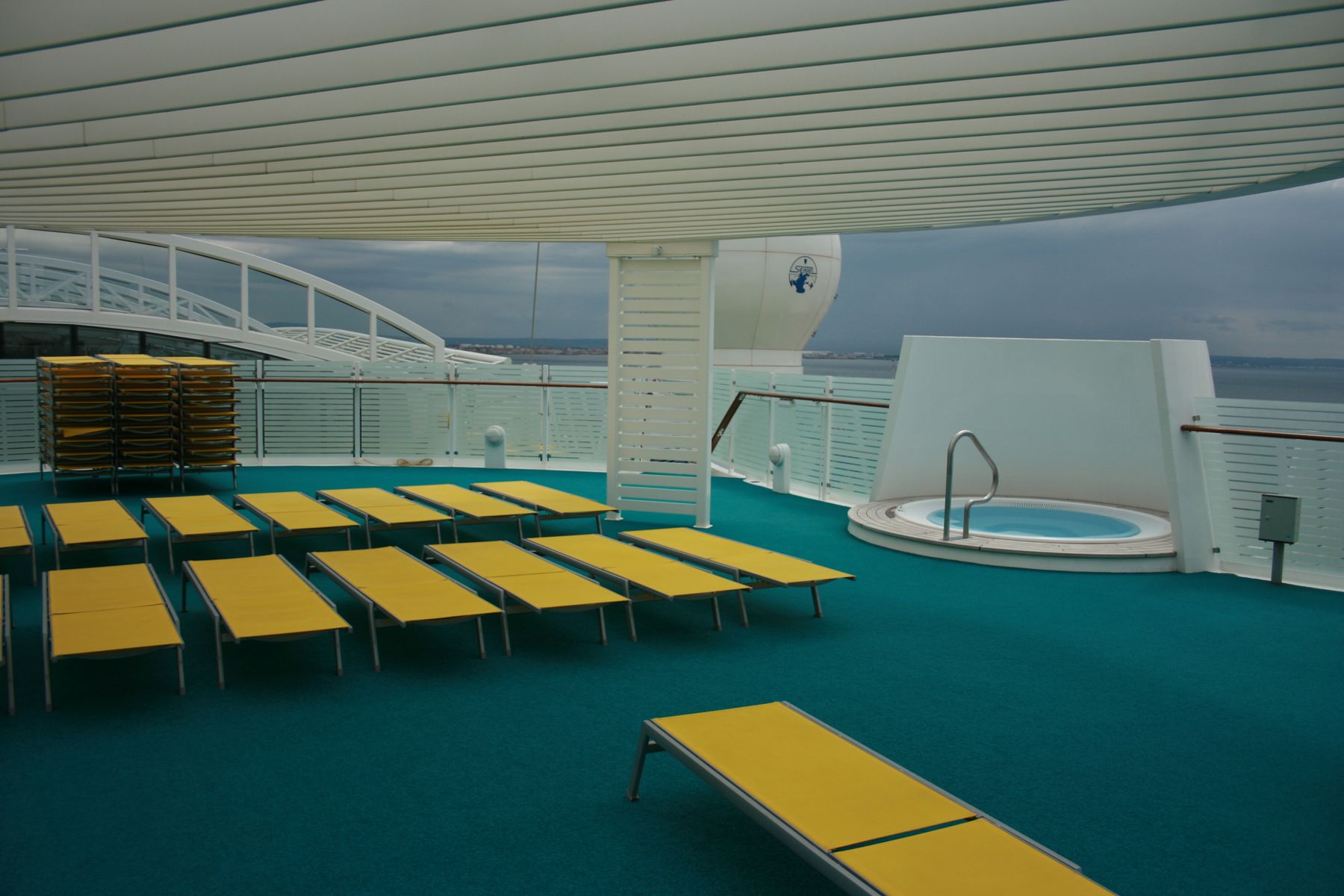 Nur ab Prima/ Perla aufwärts hat man den Saunabereich-Aussenbereich unter die vorderen Balkonkabinen platziert ( 🙈🤷♀️)
