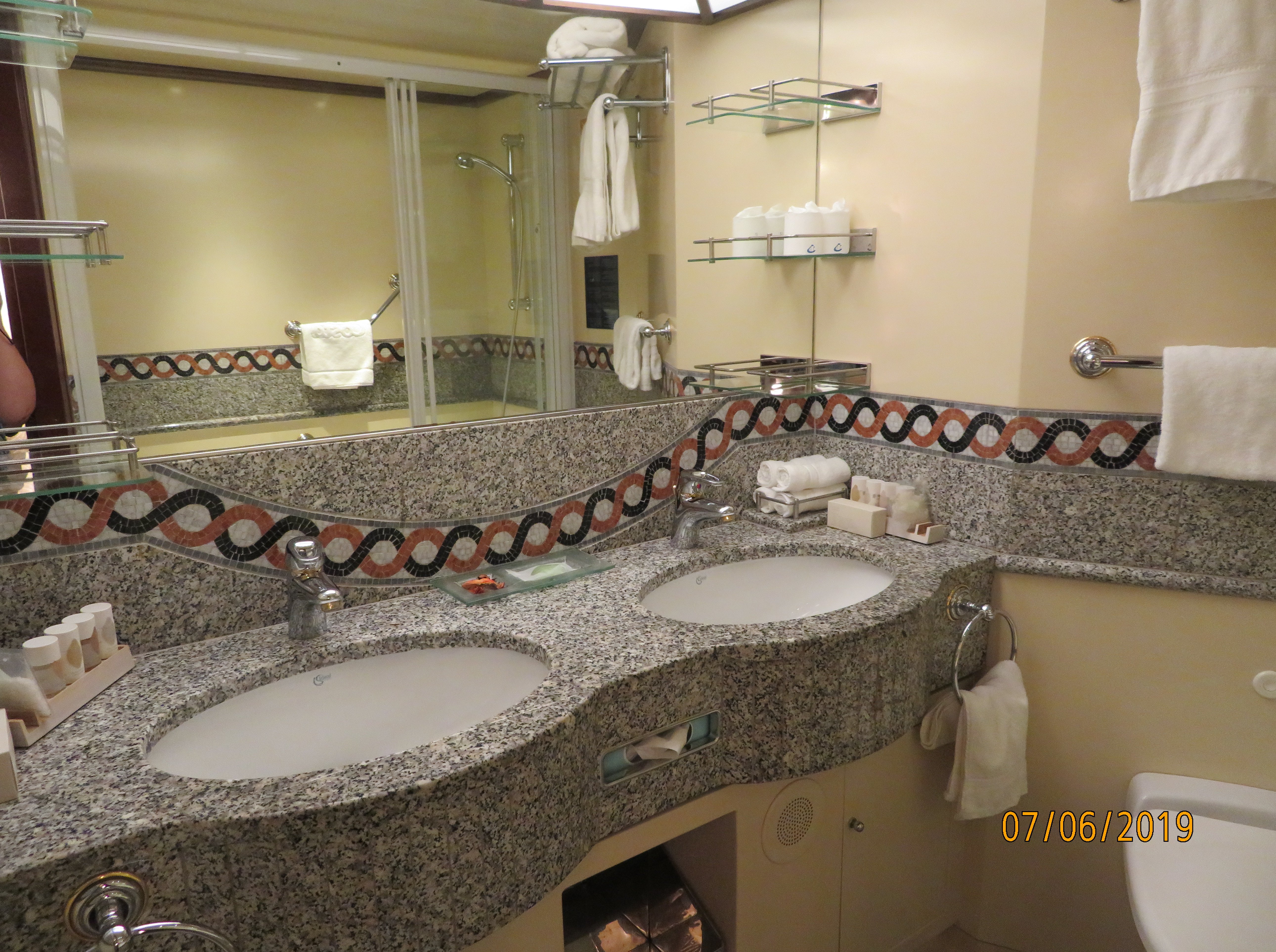 Die Fläche entspricht dem 1,5fachen einer Balkonkabine. Sie wirkt aber größer, da sehr viel Spiegel verbaut wurden. Die Lage ist ziemlich genau auf Höhe der gläsernen Fahrstühle. Ich lasse dann mal Bilder "sprechen":