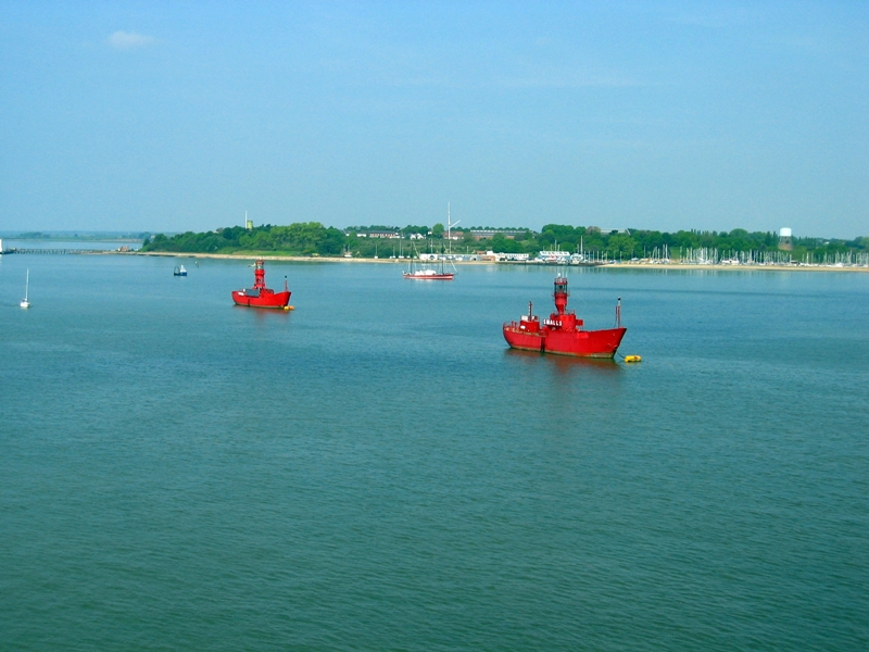 Zur Einfahrt ans Terminal in Harwich begrüßten uns zwei "Feuerschiffe", die nachts die Fahrrinne markieren.