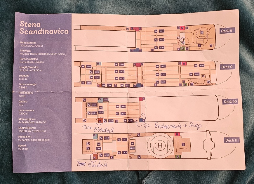 Hatte noch etwas vergessen, beim CheckIn in Kiel bekommt man auch so einen DINA4 Stadtplan von Göteborg und einen Plan vom Schiff, man achte auf die Farben der Treppenhäuser