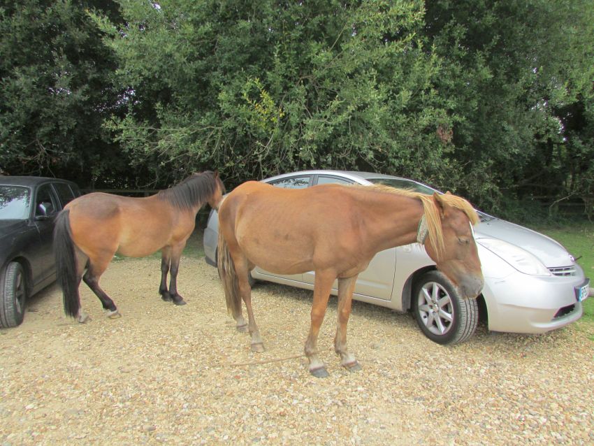 Geht in Lyndhurst am besten auf der Hauptstraße ein Stück in Richtung Ortsausgang (ist gar nicht weit vom Busparkplatz, auf dem die Ausflugsbusse halten, am New Forest Centre). Dort sind große Rasenflächen, auf denen sich viele Ponys aufhalten. Aber auch schon auf der Fahrt dorthin sieht man links und rechts der Straße (oder auch mal mitten auf der Straße, dann muss der Bus erstmal warten) überall welche. Ich fand das herrlich. Ich war im August dort, da blühte die Heide - ein Traum!