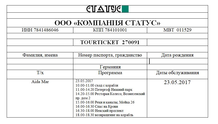Für alle, die es interessiert: unser Tourticket sah letztes Jahr so aus (Namen natürlich entfernt hihi)