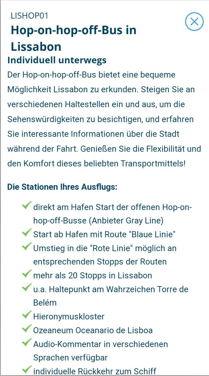 ich war vor ein paar Tagen mit der Vita in Lissabon. Wir haben den AIDA-Ausflug Spaziergang durch Lissabon mit Aufzug und