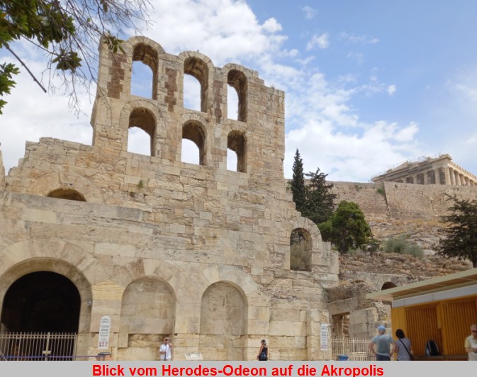 Hallo User123 wir waren 2024 mit der AidaBlue, u.a in Piräus/Athen, natürlich mit dem Ziel, unbedingt rauf auf die Akropolis. Sind mit Aida-Bus "Athen auf eigene Faust" bis zur Bus-Endstation (gegenüber vom Hadrianstor),gefahren und von dort, wenige Meter, zum unteren Akropolis-Eingang gelaufen. Da wir über Get your Gaid ein Online-Ticket für 13:00Uhr gebucht hatten, wir aber schon 11:30 dort waren, sind wir die Dionysiou-Straße zwischen Akropolis und Akropolis-Museum hochgewandert (nur leichte Steigung) vorbei am Dionysis-Theater mit tollen Blick auf die Akropolis, bis zum Odeon Herodes-Theater.