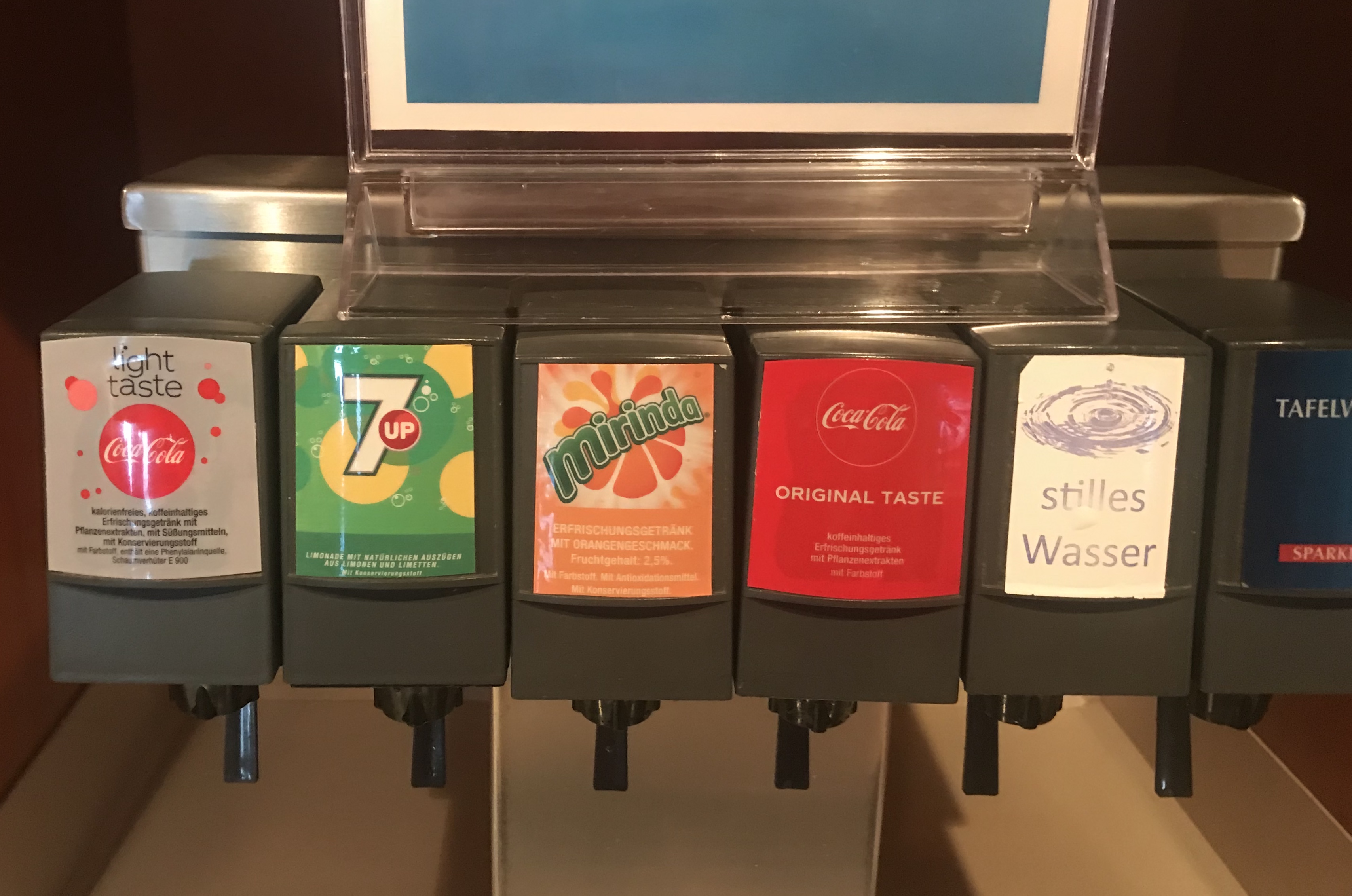 An Bord ist mir bei den Softgetränken aber immer zu wenig Kohlensäure enthalten. Und das schmeckt dann nur mäßig.